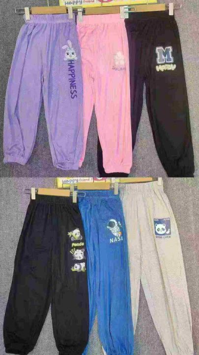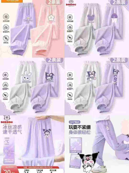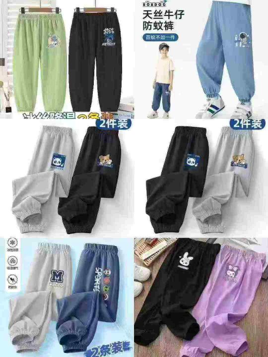 580件男女中大童薄款夏季休闲彩色防蚊裤束脚长裤,冰丝螺纹面料 高弹力,很多图案,码数110-170 货品干净防水袋装。