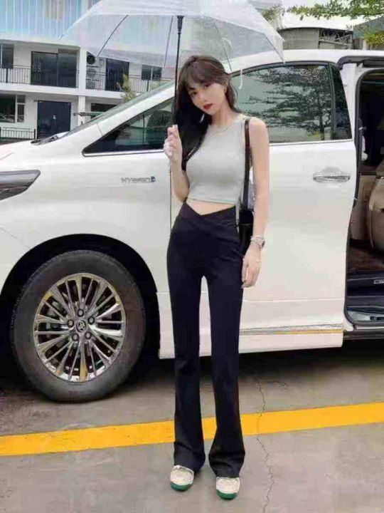 ① 辣妹交叉v腰弹力提臀开叉微喇裤!高垂感,独立包装...