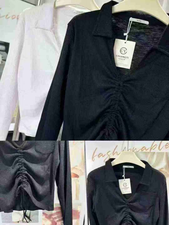 115件长袖t恤女辣妹炸街减龄v领polo针织衫内搭抽绳短款高腰露脐上衣潮,尺码S-XL,独立包装!高弹力,全清8.8
