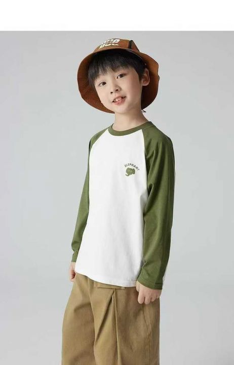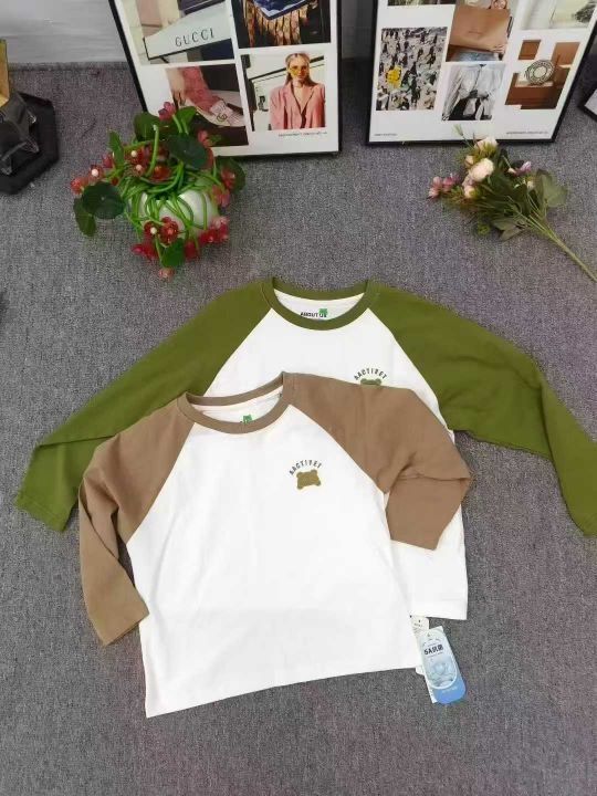 童装春秋装插肩袖撞色上衣洋气长袖,数量2000件左右,尺码110--160,胸前可爱小熊logo,面料柔软亲肤,后领包边,独立包装带吊牌