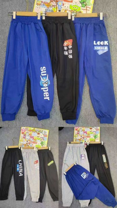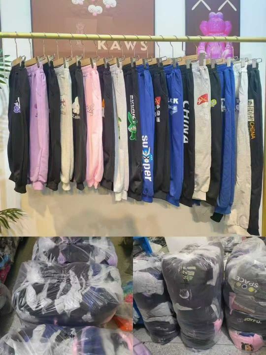 615件春秋季男女中大童印花束脚休闲卫裤 鱼鳞棉布,很多图案,码数110-170 货品干净防水袋装。
