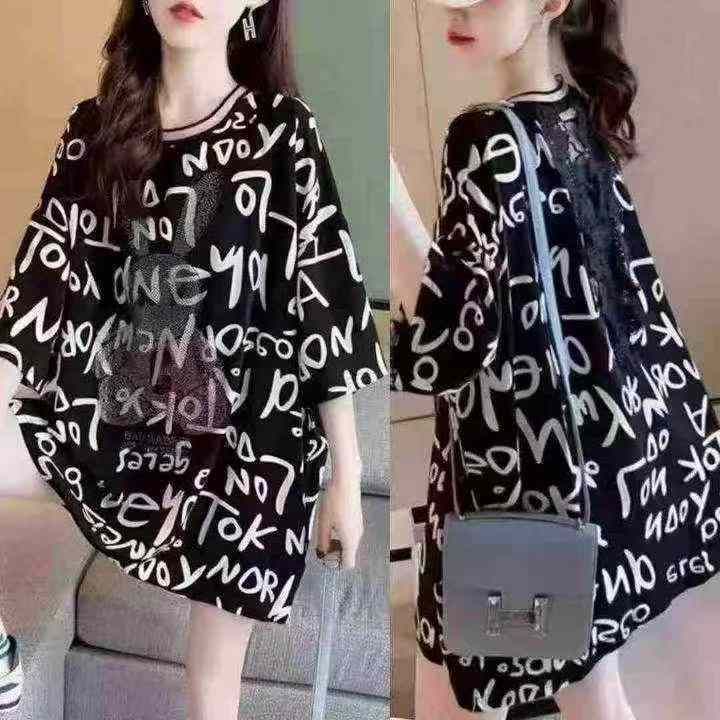 全清价6.5时尚烫钻短袖t恤女中长款夏韩版宽松ins潮露背上衣,独立包装,码...