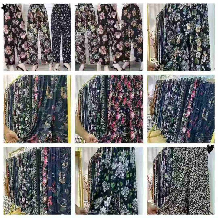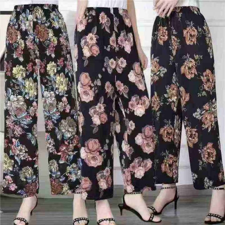 6.5元清5000件,妈妈冰丝长裤女宽松加大加肥休闲奶奶花裤子中老年阔腿裤,多色,均码!200件多款混配6.9元!