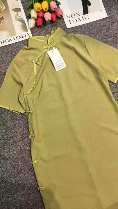 民国复古设计感半开襟长款旗袍女,[爱心]90件左右,码数S-2XL,穿70斤-140斤,万佳档口货,原包装️无瑕疵,实体店品质