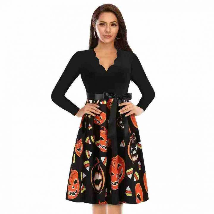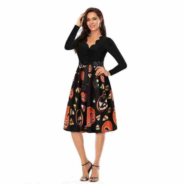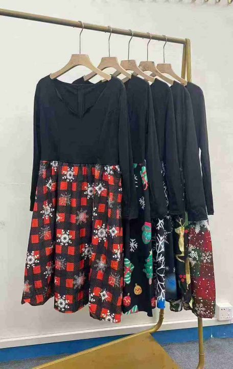 840件性感V领长袖黑色拼接印花大摆裙。花型多,面料舒适,品质好。码数S 一3XL,独立包装,全清5.8分货加1