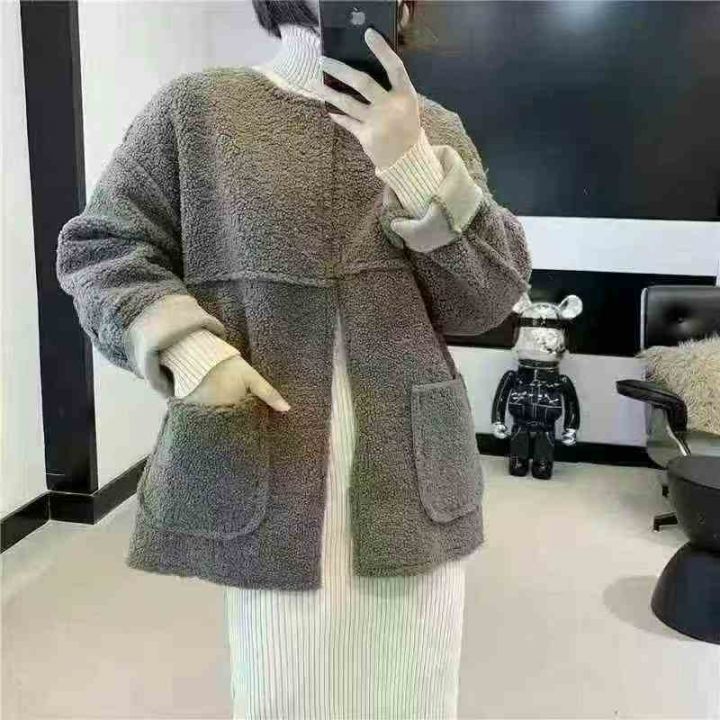秋冬两面穿羊剪绒大衣女欧洲站皮毛一体宽松羊羔毛短外套,可两面穿,整款3色,独立包装码数S-2XL,数量100件,全清9.5元