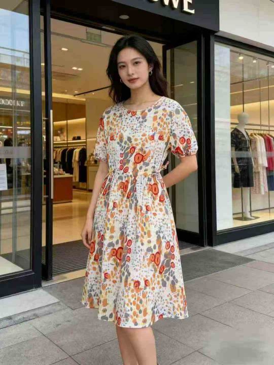 时尚简约大方气质优雅碎花收腰显瘦连衣裙,独立包装,雪纺料,两整款,大货以图四为主,码数M-4XL(1-4码),数量170条,货号1210#10