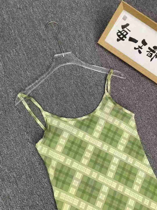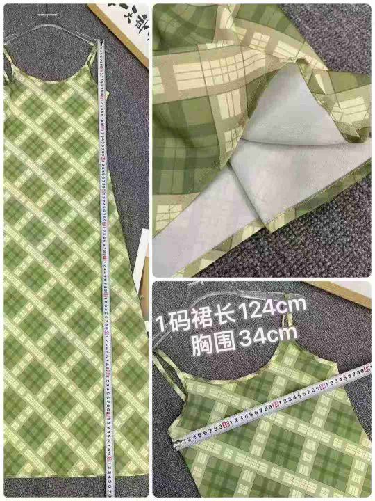 法式复古吊带连衣裙205件8.9,绿色格纹,码数1-4码(S...