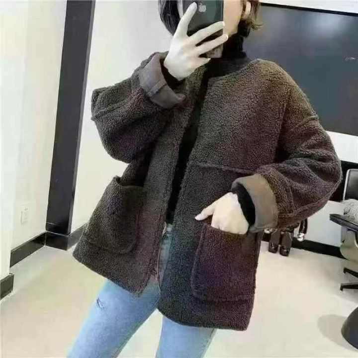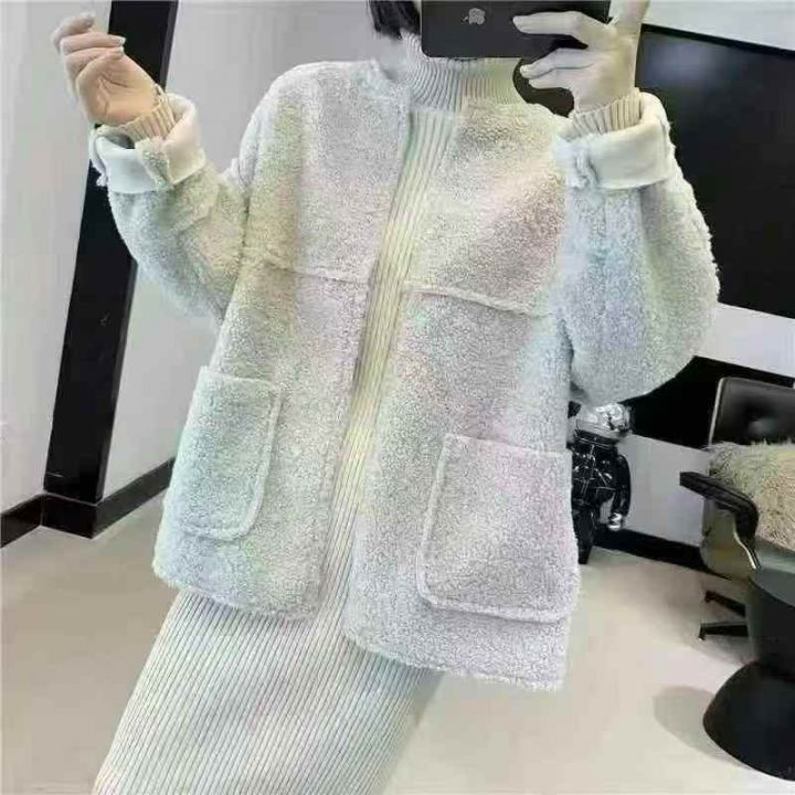 秋冬两面穿羊剪绒大衣女欧洲站皮毛一体宽松羊羔毛短外套,可两面穿,整款3色,独立包装码数S-2XL,数量100件,全清9.5元