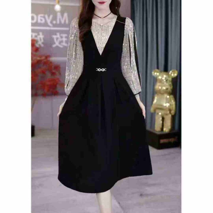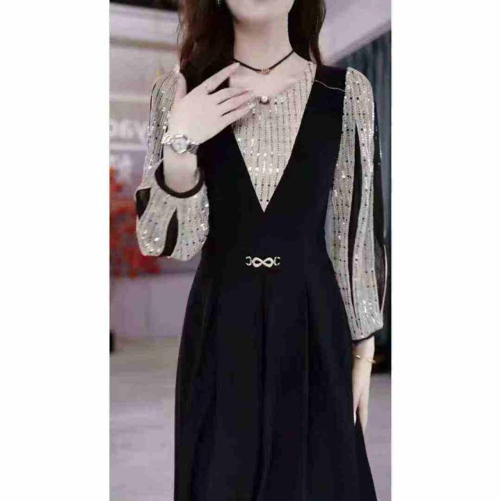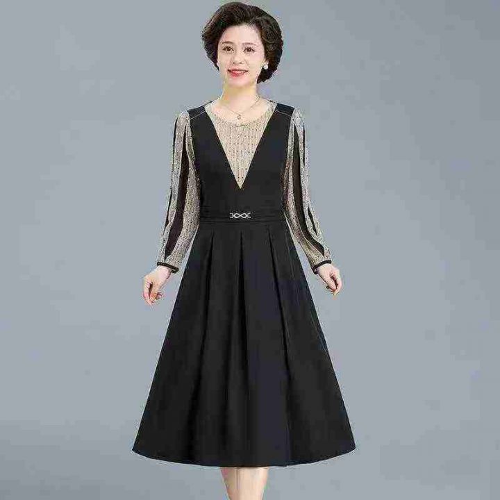 妈妈装秋季长袖连衣裙薄款中老年女雪纺洋气上衣气质阔太太装裙子,数量175件,码数s-3xl,独立包装,全清8.8元