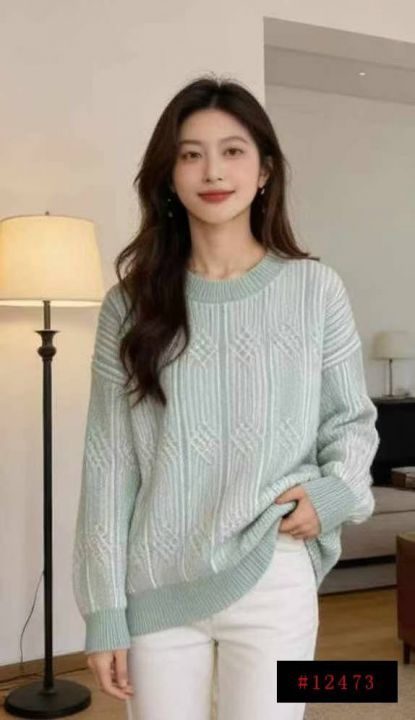 秋冬新款韩系宽松慵懒百搭提花设计款北极绒圆领套头毛衣,独立包装,均码面...