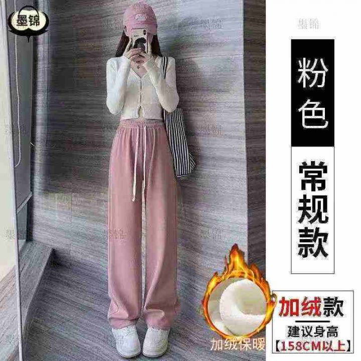 灯芯绒阔腿裤冬季加绒宽松垂感高腰显瘦休闲抽绳直筒女裤,整款三色,独立包装,50件左右,M-3XL,10.8清,