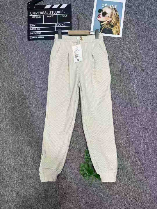 1015条灯芯绒哈伦裤女加绒加厚宽松高腰束脚裤米色休闲萝卜裤子,单款单色,码数S一XL,独立包装,内里包边,全清11.8分货加1。 货号:24862