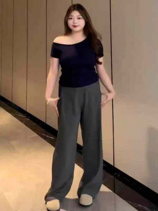 2.8清电商仓回收282件韩系慵懒胖MM大码辣妹斜肩短袖T恤,码数S-XL。版型宽...