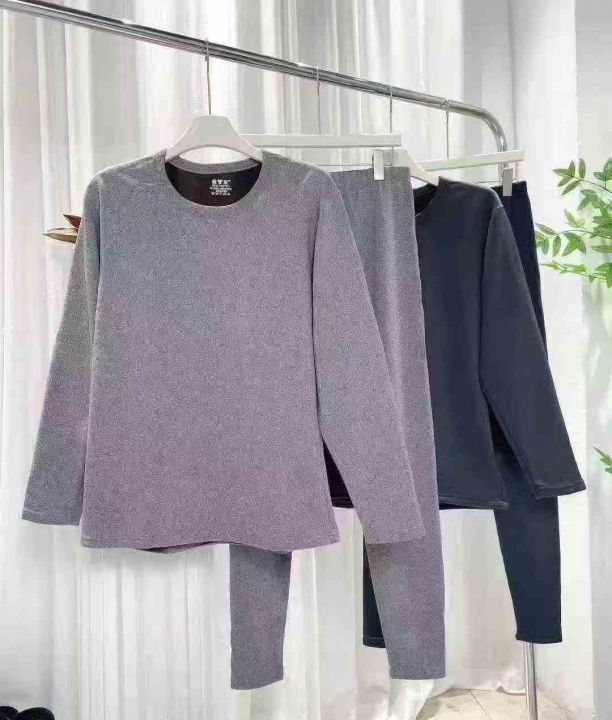 10000套雅鹿品牌男款圆领时尚加绒加厚德绒保暖套装,...