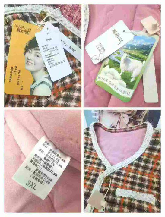 商场下架,数量1323件,全部原包装原吊牌,高档拉链包装,面料,羊绒,天蚕丝,穿上特别舒服柔软,白色包边部位都是襄金线工艺,码数XL一5XL,(不是普通花棉袄)