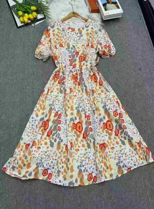 时尚简约大方气质优雅碎花收腰显瘦连衣裙,独立包装,雪纺料,两整款,大货以图四为主,码数M-4XL(1-4码),数量170条,货号1210#10