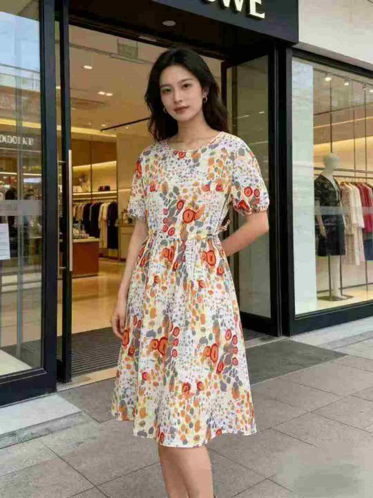 全清价9.8时尚简约大方气质优雅碎花收腰显瘦连衣裙,...