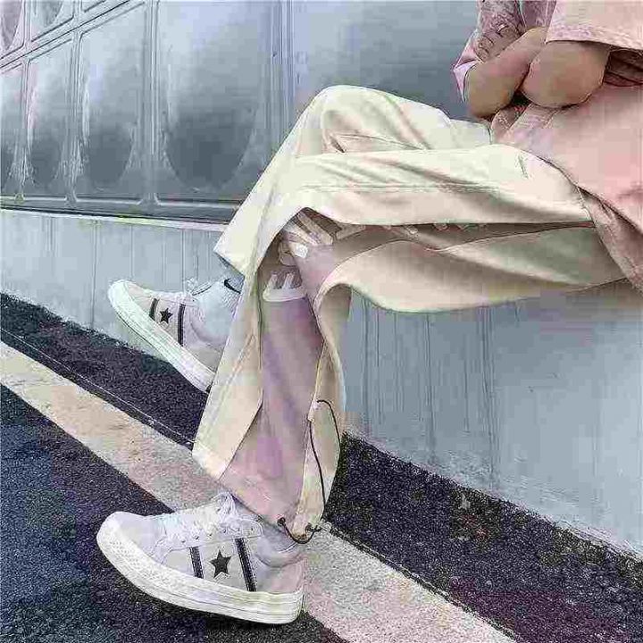 423条,港风休闲裤女2025夏季新款宽松阔腿裤薄款抽绳束脚拼接学生运动裤,独立包装,码数S-3XL,全清7.8元,分货➕0.5