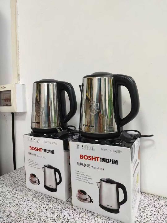 博世通国标1.8升电热水壶 0.5厚不锈钢 双金温控 全铜线 超大内钢盖 原包原件现货3000pcs