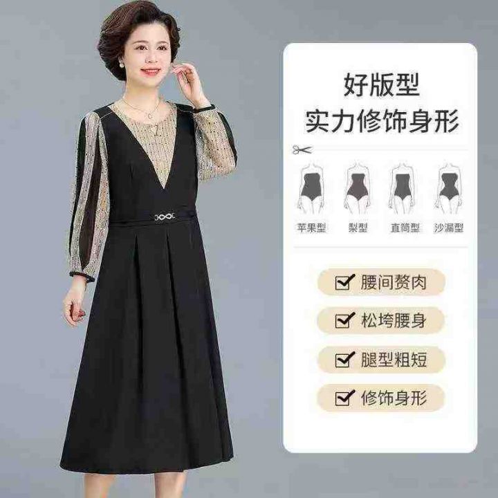 妈妈装秋季长袖连衣裙薄款中老年女雪纺洋气上衣气质阔太太装裙子,数量175件,码数s-3xl,独立包装,全清8.8元