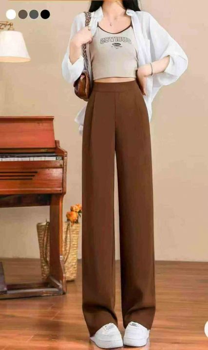卡其色窄版阔腿裤女早春季2025新款高腰显瘦西装裤休闲垂感直筒裤,140条,(型号5019#18)均码,独立包装,超大弹力裤腰。