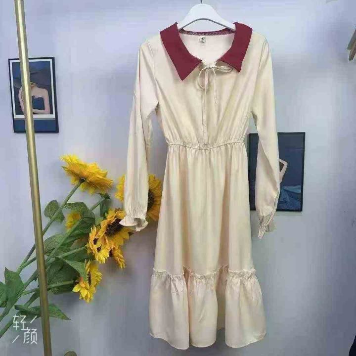 撞色领系带复古长袖连衣裙,秋冬款,码数均码,独立包...
