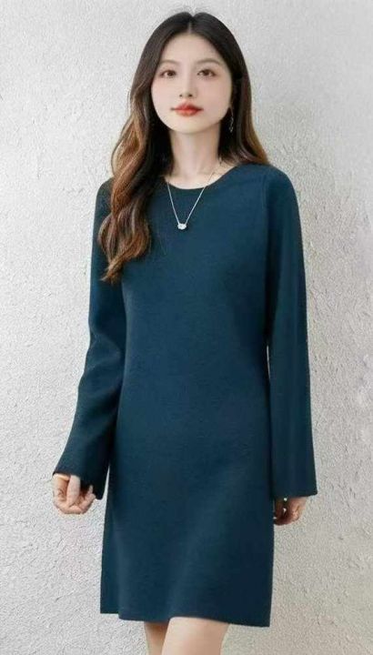 秋冬新款净版简约宽松百搭针织毛衣连衣裙,独立包装,...