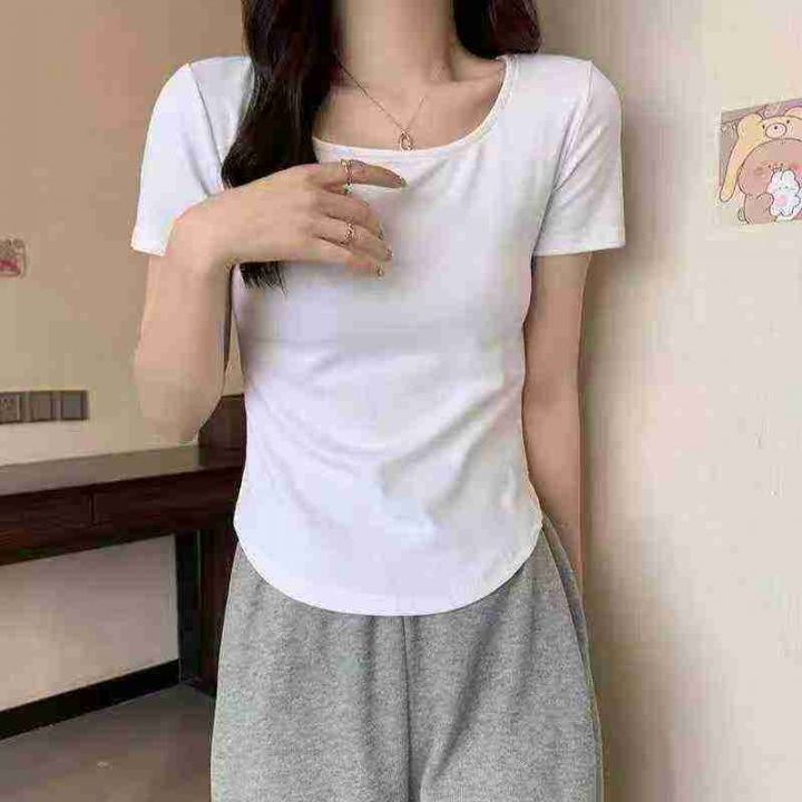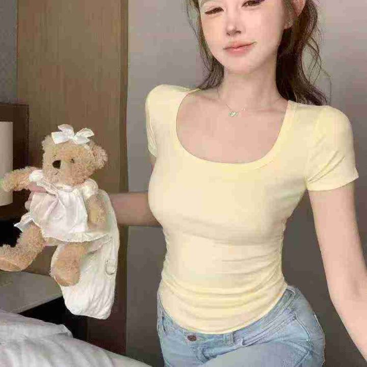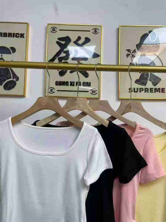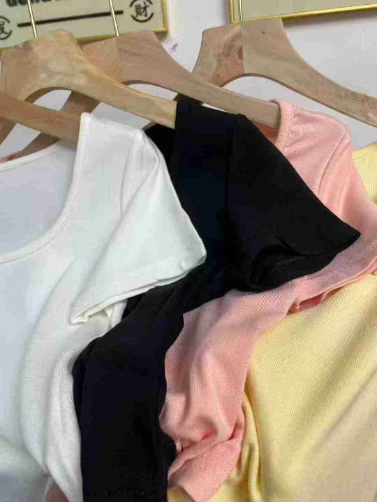 天猫在售款578件左右高品质纯欲风女神穿搭不规则方领百搭T恤上衣,码数M-L,单款三色,质量好螺纹面料高弹力,独立包装带吊牌