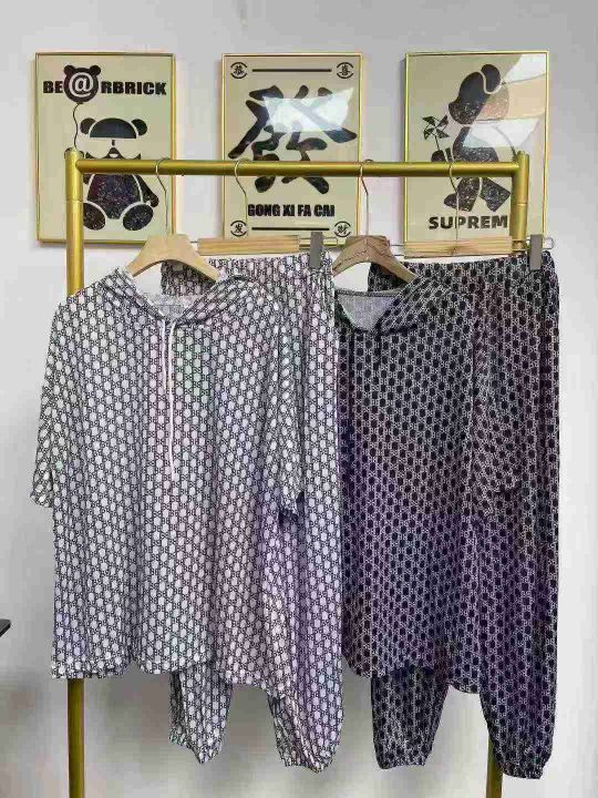 天猫在售款190件左右高品质夏季高端时尚潮牌满印连帽休闲套装,码数M-L,单款两色,质量好有弹力,独立包装
