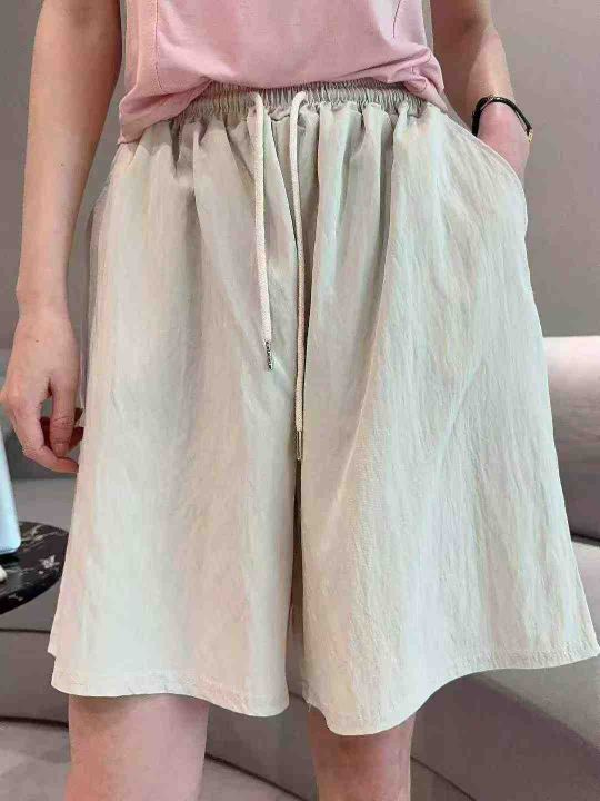上新全清:11.8一件多巴胺抽绳阔腿松紧腰宽松休闲短裤...