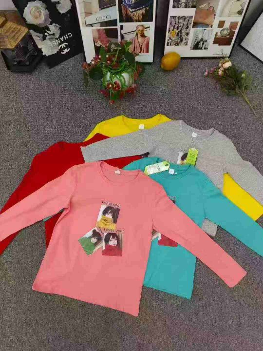童装纯棉女春秋百搭印花长袖,数量1500件左右,尺码110--160,整款五个色,纯棉包边,独立包装带吊牌,货品干净整洁