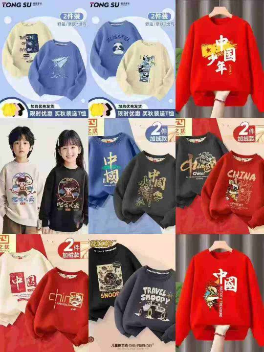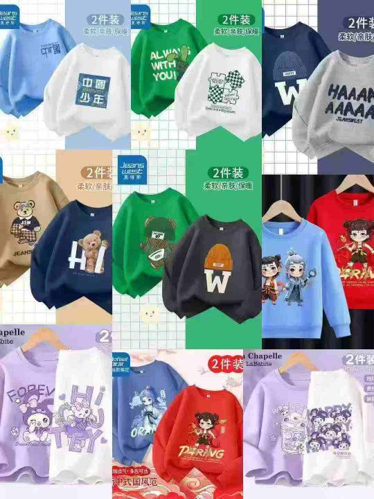 1700件春秋季男女中大童彩色多巴胺 印花圆领卫衣 鱼鳞棉布,杂图杂色 后领包边过肩,码数110-170 货品干净防水袋装。