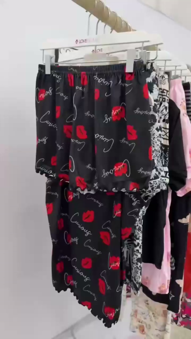6.9清6492件外贸亚马逊欧美印花宽松家居套装,双短双长套装都有,两件套偏...