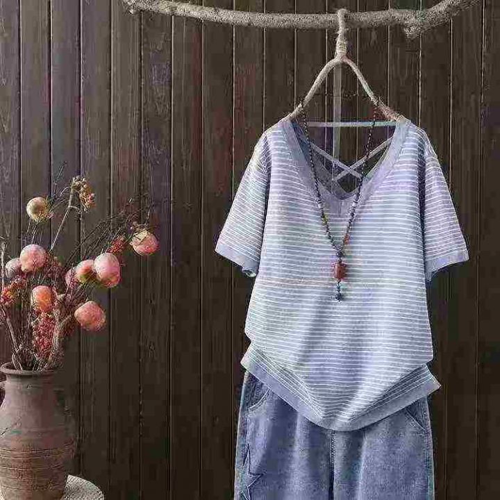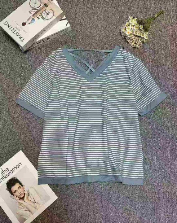 新款女装条纹宽松显瘦遮肚子上衣短袖T,大版型,有独立包装,数量100件左右...