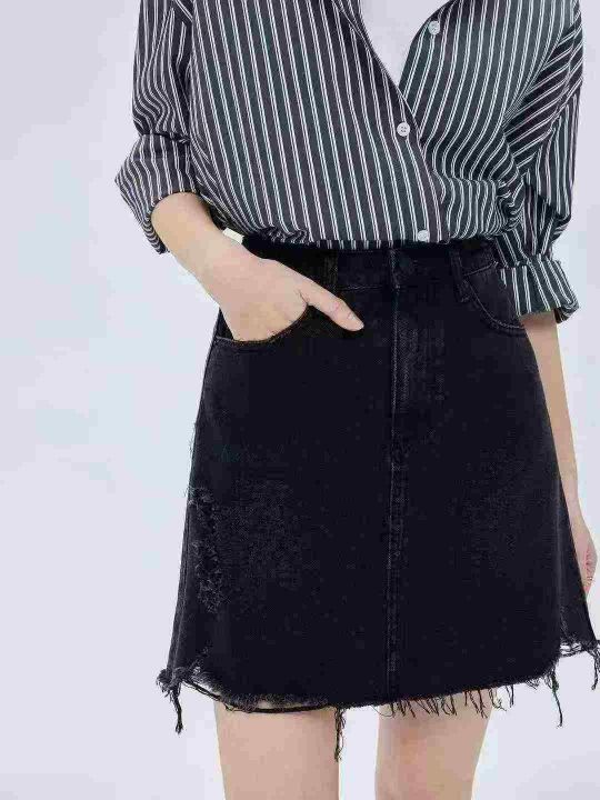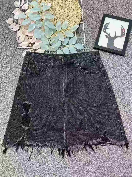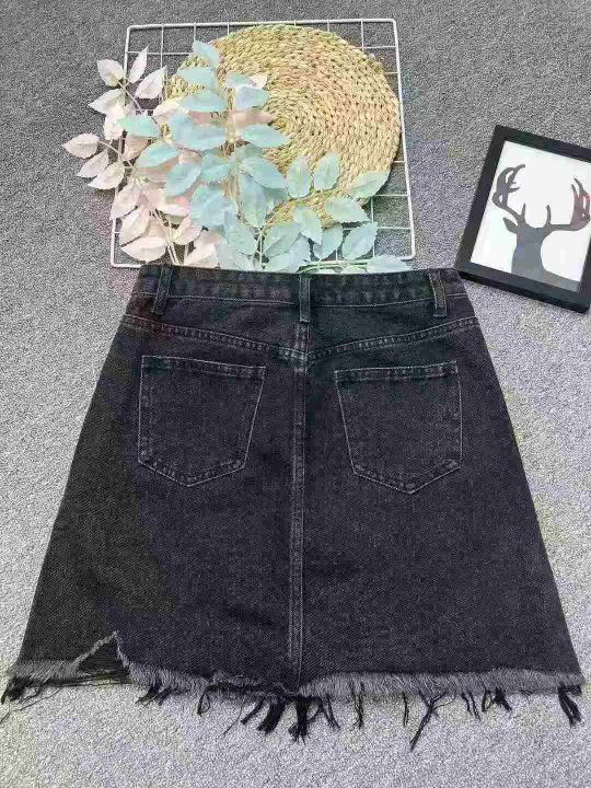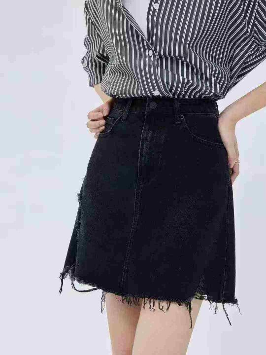 复古牛仔短裙☕️195条全清8.8元,码数S到XL,独立包装,新款显瘦黑色不规则a字牛仔半身裙女