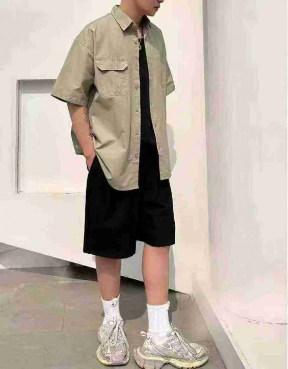 复古宽松休闲短袖衬衫206件7.9,不对称口袋设计,码数8-16码(M-3XL),独...