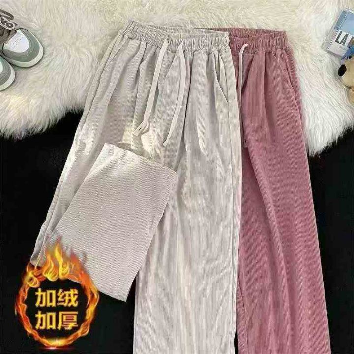 灯芯绒阔腿裤冬季加绒宽松垂感高腰显瘦休闲抽绳直筒女裤,整款三色,独立包装,50件左右,M-3XL,10.8清,
