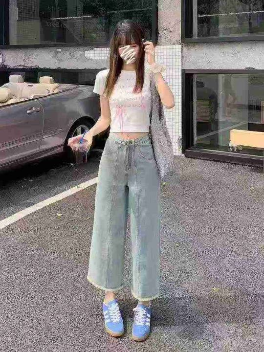 6.9清电商仓回收784件靓妹复古慵懒遮胯宽松八分牛仔裤...