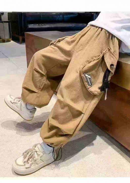 工装春夏季新款儿童装男童裤子休闲裤中大童宽松男孩工装长裤,斜纹棉面料,...