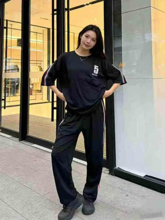 全清价9.8夏天穿搭一整套T恤新款显瘦运动休闲长裤套装...