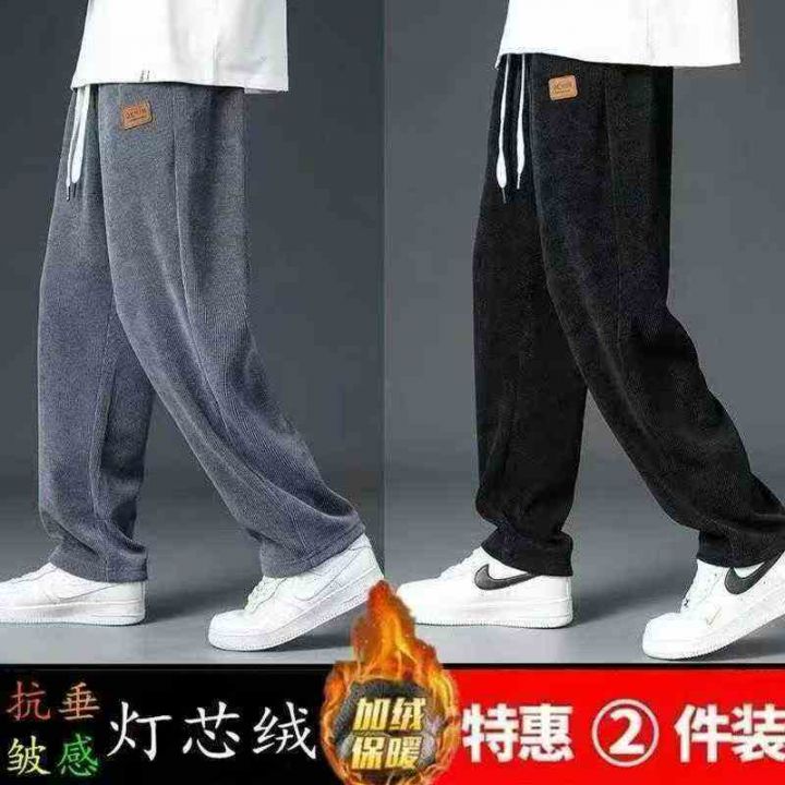 新款冬季男士灯芯绒长裤加绒外穿保暖时尚百搭港风宽松潮流休闲直筒裤,整款三色,独立包装,M-3XL,500件左右,10.8清,分+1