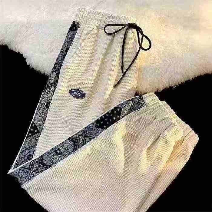 清8.8男装冬季港风灯芯绒拼接抽绳松紧脚口加绒休闲卫裤,数量164件,码数S-...