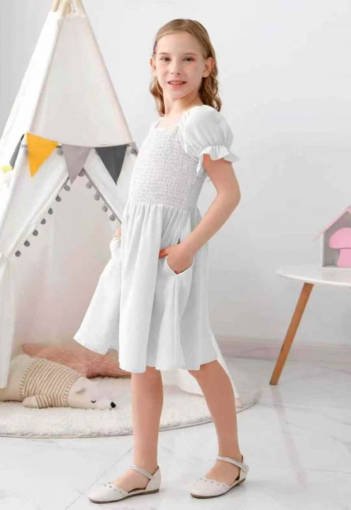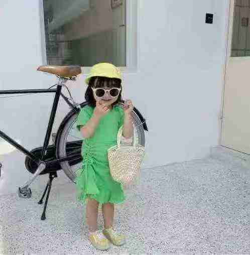 全清价6.9元夏季方领打揽简约A字纯色童装连衣裙 ,数量:754条,码数:6Y-14...