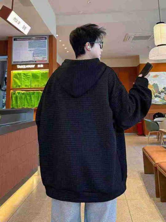 电商仓回收120件潮牌宽松大版华夫格男女同款连帽卫衣,码数M-3XL。面料柔软舒适,版型够大,超低价好货清仓!