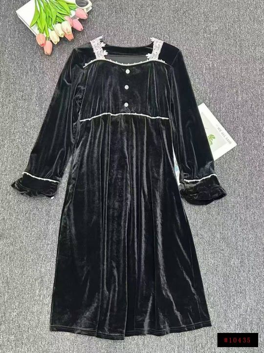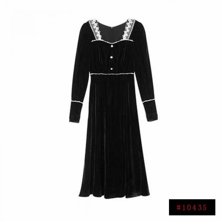 ️39件,法式丝绒连衣裙赫本秋冬新款复古过膝长裙长袖蕾丝接收显瘦气质,独立包装,全清9.9元@_@