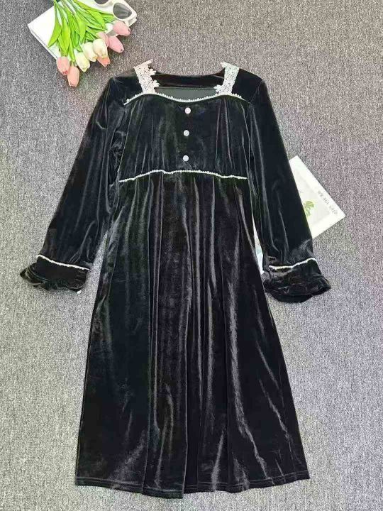 ️39件,法式丝绒连衣裙赫本秋冬新款复古过膝长裙长袖蕾丝接收显瘦气质,独立包装,全清9.9元