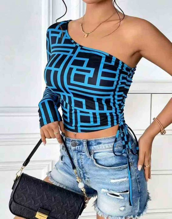 欧美露背性感亚马逊跨境系绳斜肩T,整款四色,数量 37...
