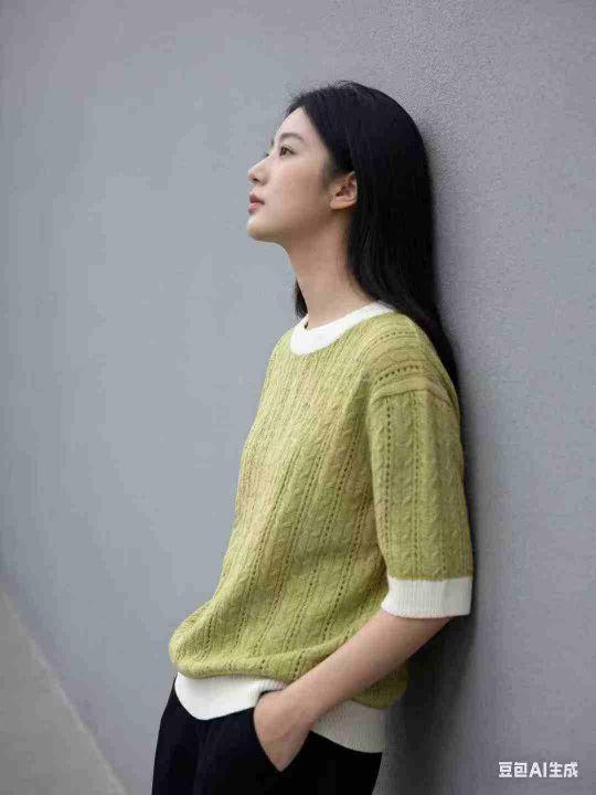 全清9.9,橄榄绿撞色针织毛衣短袖,独立包...
