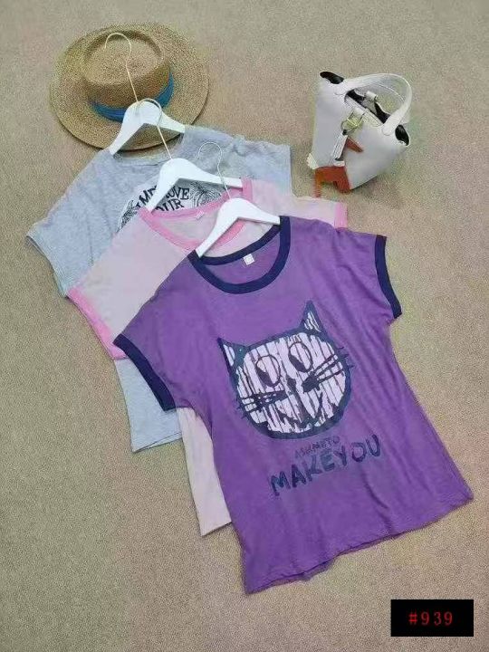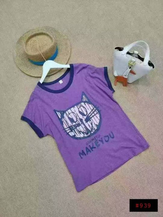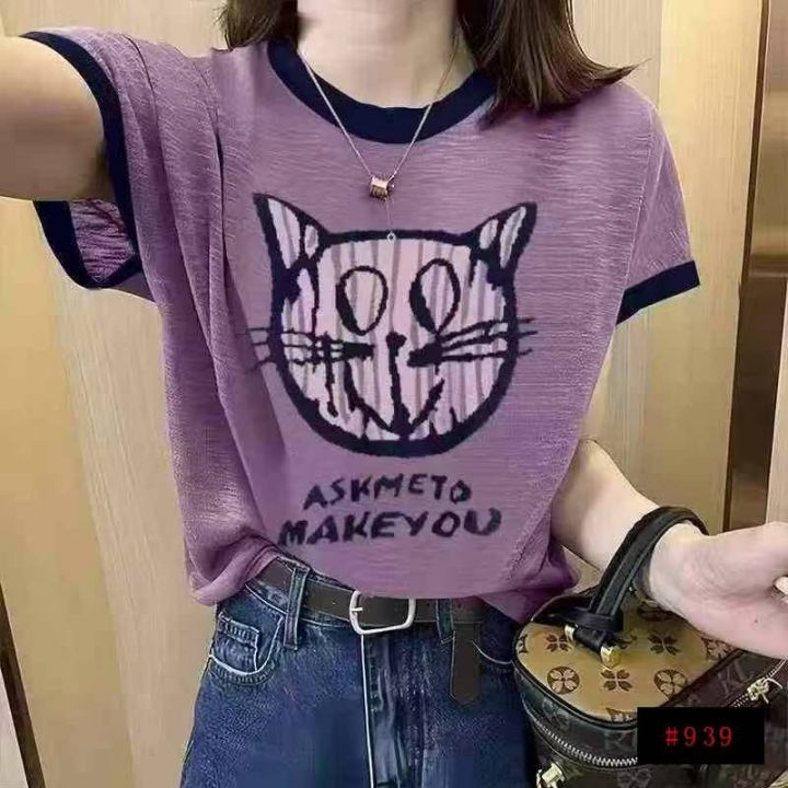 [月亮]:6.9清337件[月亮]:字母猫咪休闲竹节纯棉T恤[...